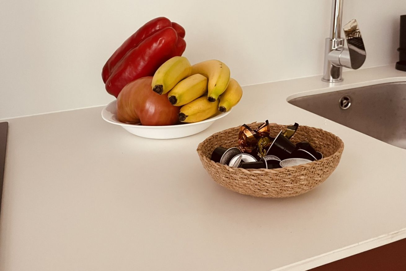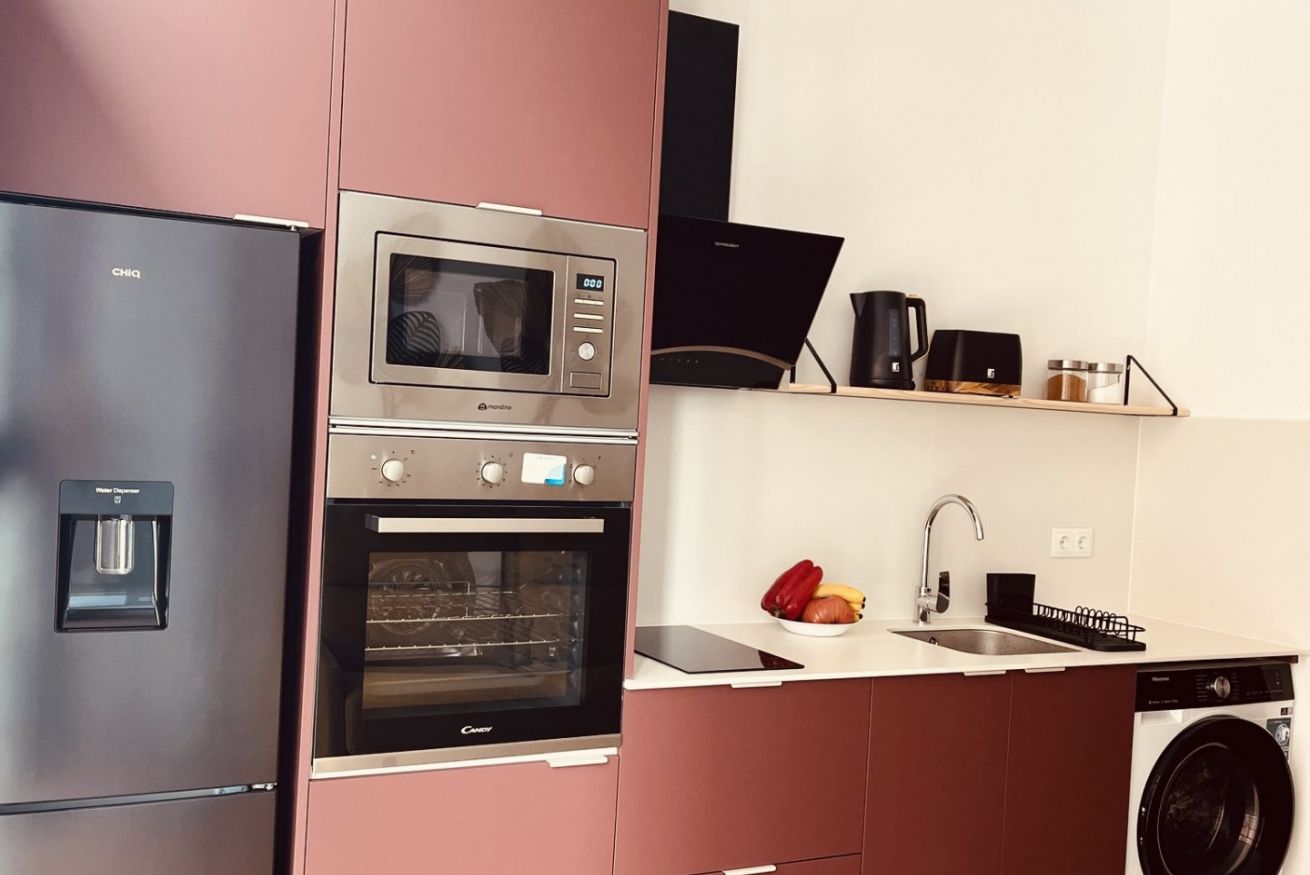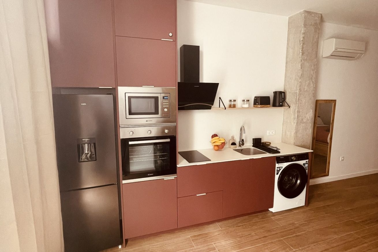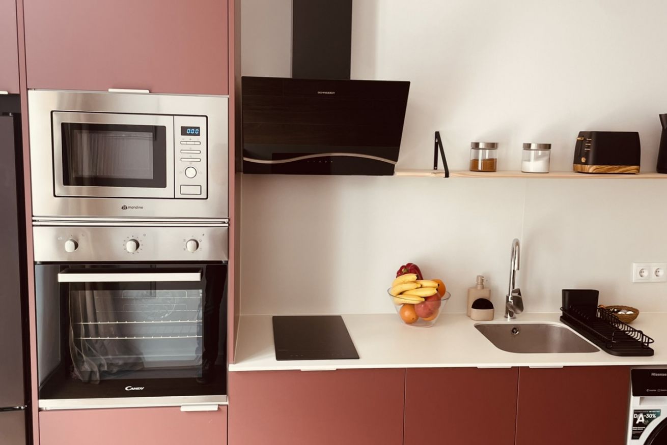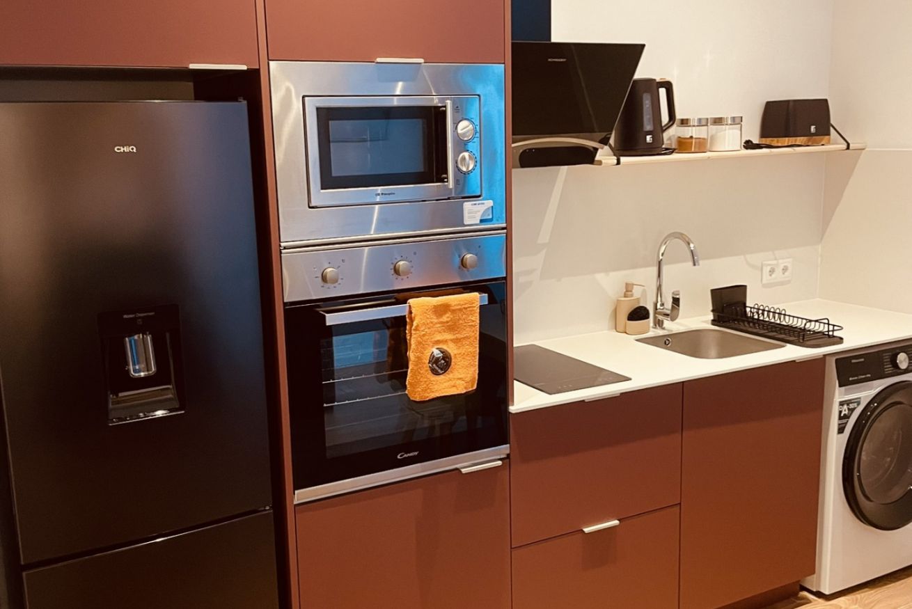 • Cocina equipada: moderna y funcional, perfecta para estancias cortas o medias. Incluye nevera, placa de inducción, horno, microondas, cafetera Nespresso y menaje completo.